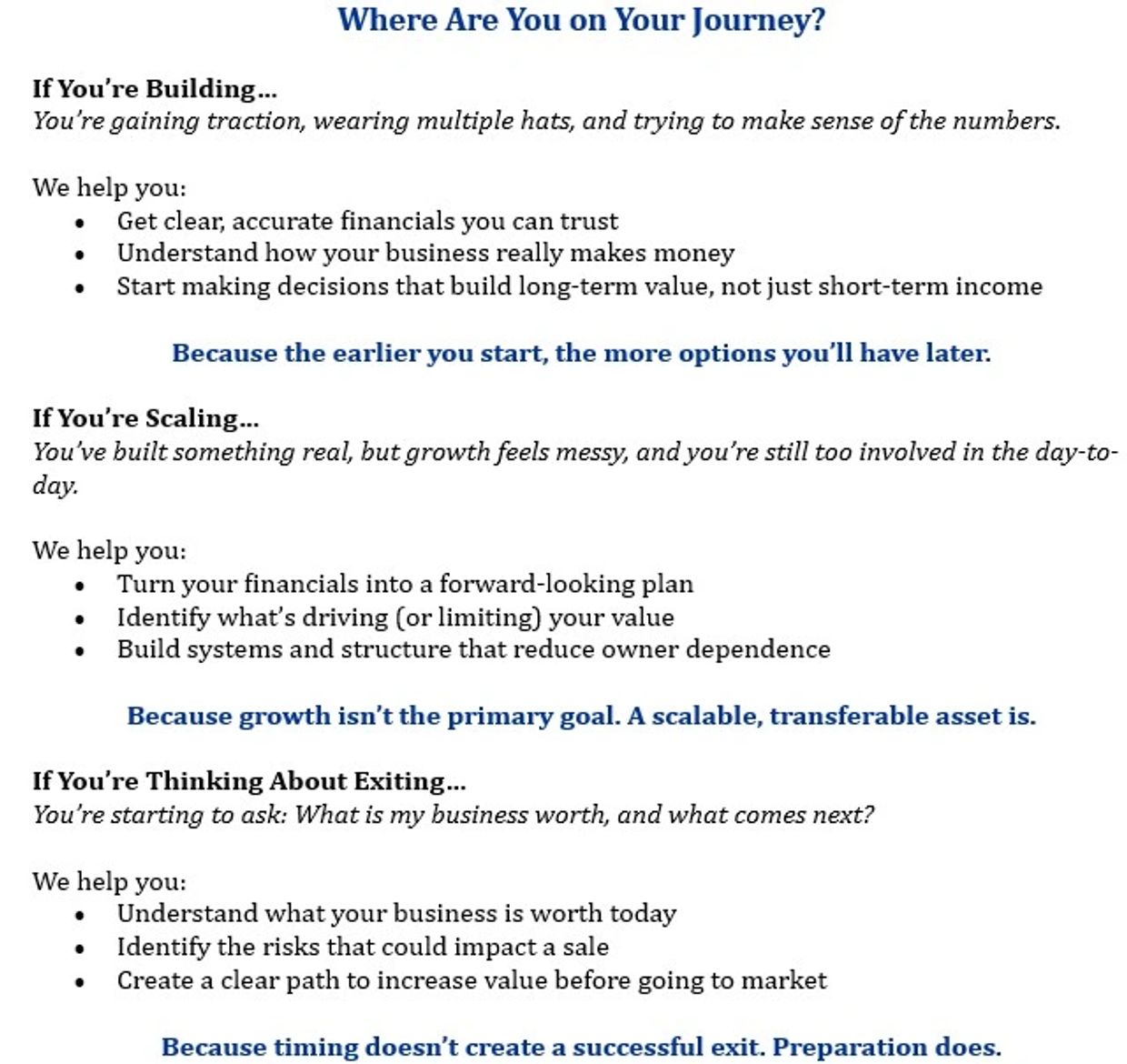 But it doesn’t have to be this way! Our mission is to help entrepreneurs build value and unlock the wealth trapped in their business.