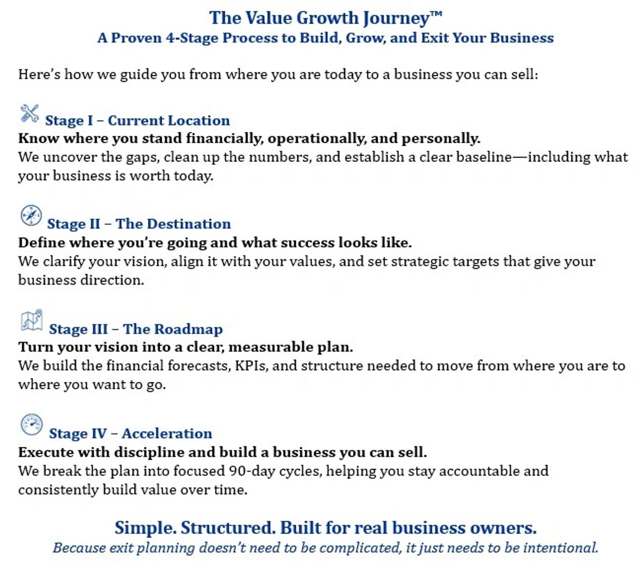 Ready to move beyond the basics? Our four-stage "Road Trip" process starts by assessing where you are and where you want to go—then we map the path and ride alongside you every step of the way